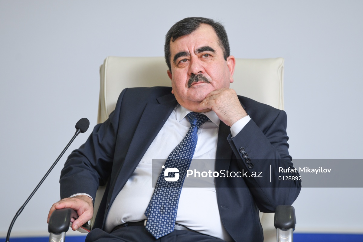 "Mediada Azərbaycan ədəbi dilinin normalarının düzgün tətbiqi" mövzusunda konfransda iştirak edən "Şərq" qəzetinin baş redaktoru, Əməkdar jurnalist Akif Aşırlı.