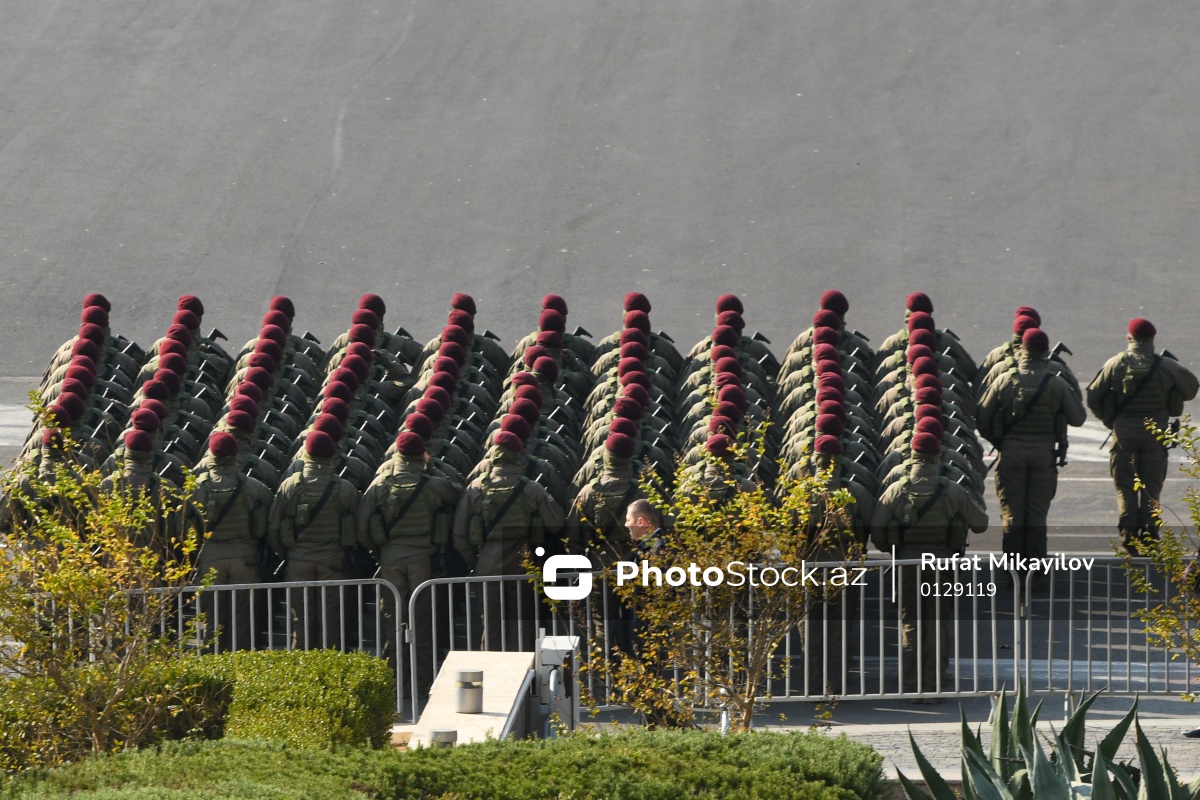 Noyabrın 8-də Bakının Azadlıq meydanında Vətən müharibəsində qələbənin beşinci ildönümünə həsr olunmuş hərbi parad keçirilib. Azərbaycan Respublikasının Prezidenti İlham Əliyev, birinci xanım Mehriban Əliyeva, Türkiyə Respublikasının Prezidenti Rəcəb Tayyib Ərdoğan, Pakistan İslam Respublikasının Baş naziri Məhəmməd Şahbaz Şərif paradda iştirak ediblər. Azərbaycanın, Türkiyənin və Pakistanın Dövlət himnləri səsləndirilib. Ümummilli Lider Heydər Əliyevin və qəhrəman şəhidlərimizin xatirəsi 1 dəqiqəlik sükutla yad olunub. Müdafiə naziri general-polkovnik Zakir Həsənov Azərbaycan Prezidenti, Silahlı Qüvvələrin Müzəffər Ali Baş Komandanı İlham Əliyevə raport verib. Paradda Azərbaycan Respublikasının Prezidenti İlham Əliyev, Türkiyə Respublikasının Prezidenti Rəcəb Tayyib Ərdoğan və Pakistan İslam Respublikasının Baş naziri Məhəmməd Şahbaz Şərif çıxış edib. Daha sonra Silahlı Qüvvələrin şəxsi heyətinin və hərbi texnikanın təntənəli keçidi başlayıb. Hərbi Dəniz Qüvvələrinin və Dövlət Sərhəd Xidməti Sahil Mühafizəsinin döyüş gəmiləri və katerləri Xəzər dənizinin sahil sularında yüksək döyüş hazırlığı nümayiş etdirib. Bundan sonra Azadlıq meydanı üzərində Azərbaycan və Türkiyə pilotlarının iştirakı ilə Hərbi Hava Qüvvələrinə məxsus döyüş təyyarələrinin və helikopterlərin uçuşu olub.