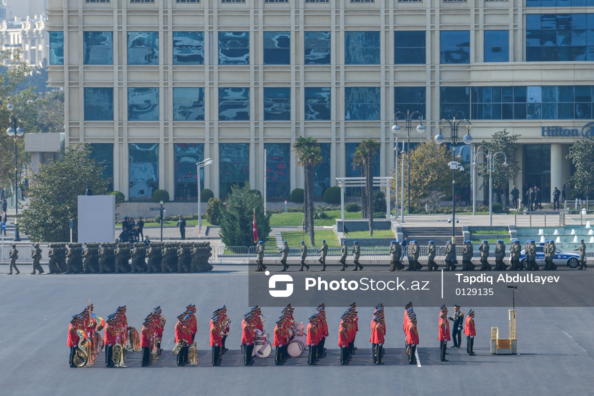Noyabrın 8-də Bakının Azadlıq meydanında Vətən müharibəsində qələbənin beşinci ildönümünə həsr olunmuş hərbi parad keçirilib. Azərbaycan Respublikasının Prezidenti İlham Əliyev, birinci xanım Mehriban Əliyeva, Türkiyə Respublikasının Prezidenti Rəcəb Tayyib Ərdoğan, Pakistan İslam Respublikasının Baş naziri Məhəmməd Şahbaz Şərif paradda iştirak ediblər. Azərbaycanın, Türkiyənin və Pakistanın Dövlət himnləri səsləndirilib. Ümummilli Lider Heydər Əliyevin və qəhrəman şəhidlərimizin xatirəsi 1 dəqiqəlik sükutla yad olunub. Müdafiə naziri general-polkovnik Zakir Həsənov Azərbaycan Prezidenti, Silahlı Qüvvələrin Müzəffər Ali Baş Komandanı İlham Əliyevə raport verib. Paradda Azərbaycan Respublikasının Prezidenti İlham Əliyev, Türkiyə Respublikasının Prezidenti Rəcəb Tayyib Ərdoğan və Pakistan İslam Respublikasının Baş naziri Məhəmməd Şahbaz Şərif çıxış edib. Daha sonra Silahlı Qüvvələrin şəxsi heyətinin və hərbi texnikanın təntənəli keçidi başlayıb. Hərbi Dəniz Qüvvələrinin və Dövlət Sərhəd Xidməti Sahil Mühafizəsinin döyüş gəmiləri və katerləri Xəzər dənizinin sahil sularında yüksək döyüş hazırlığı nümayiş etdirib. Bundan sonra Azadlıq meydanı üzərində Azərbaycan və Türkiyə pilotlarının iştirakı ilə Hərbi Hava Qüvvələrinə məxsus döyüş təyyarələrinin və helikopterlərin uçuşu olub.