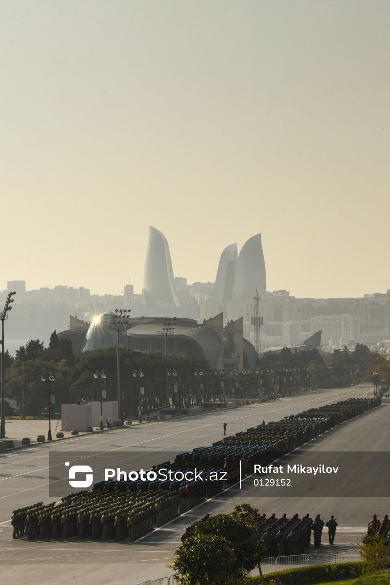 Noyabrın 8-də Bakının Azadlıq meydanında Vətən müharibəsində qələbənin beşinci ildönümünə həsr olunmuş hərbi parad keçirilib. Azərbaycan Respublikasının Prezidenti İlham Əliyev, birinci xanım Mehriban Əliyeva, Türkiyə Respublikasının Prezidenti Rəcəb Tayyib Ərdoğan, Pakistan İslam Respublikasının Baş naziri Məhəmməd Şahbaz Şərif paradda iştirak ediblər. Azərbaycanın, Türkiyənin və Pakistanın Dövlət himnləri səsləndirilib. Ümummilli Lider Heydər Əliyevin və qəhrəman şəhidlərimizin xatirəsi 1 dəqiqəlik sükutla yad olunub. Müdafiə naziri general-polkovnik Zakir Həsənov Azərbaycan Prezidenti, Silahlı Qüvvələrin Müzəffər Ali Baş Komandanı İlham Əliyevə raport verib. Paradda Azərbaycan Respublikasının Prezidenti İlham Əliyev, Türkiyə Respublikasının Prezidenti Rəcəb Tayyib Ərdoğan və Pakistan İslam Respublikasının Baş naziri Məhəmməd Şahbaz Şərif çıxış edib. Daha sonra Silahlı Qüvvələrin şəxsi heyətinin və hərbi texnikanın təntənəli keçidi başlayıb. Hərbi Dəniz Qüvvələrinin və Dövlət Sərhəd Xidməti Sahil Mühafizəsinin döyüş gəmiləri və katerləri Xəzər dənizinin sahil sularında yüksək döyüş hazırlığı nümayiş etdirib. Bundan sonra Azadlıq meydanı üzərində Azərbaycan və Türkiyə pilotlarının iştirakı ilə Hərbi Hava Qüvvələrinə məxsus döyüş təyyarələrinin və helikopterlərin uçuşu olub.