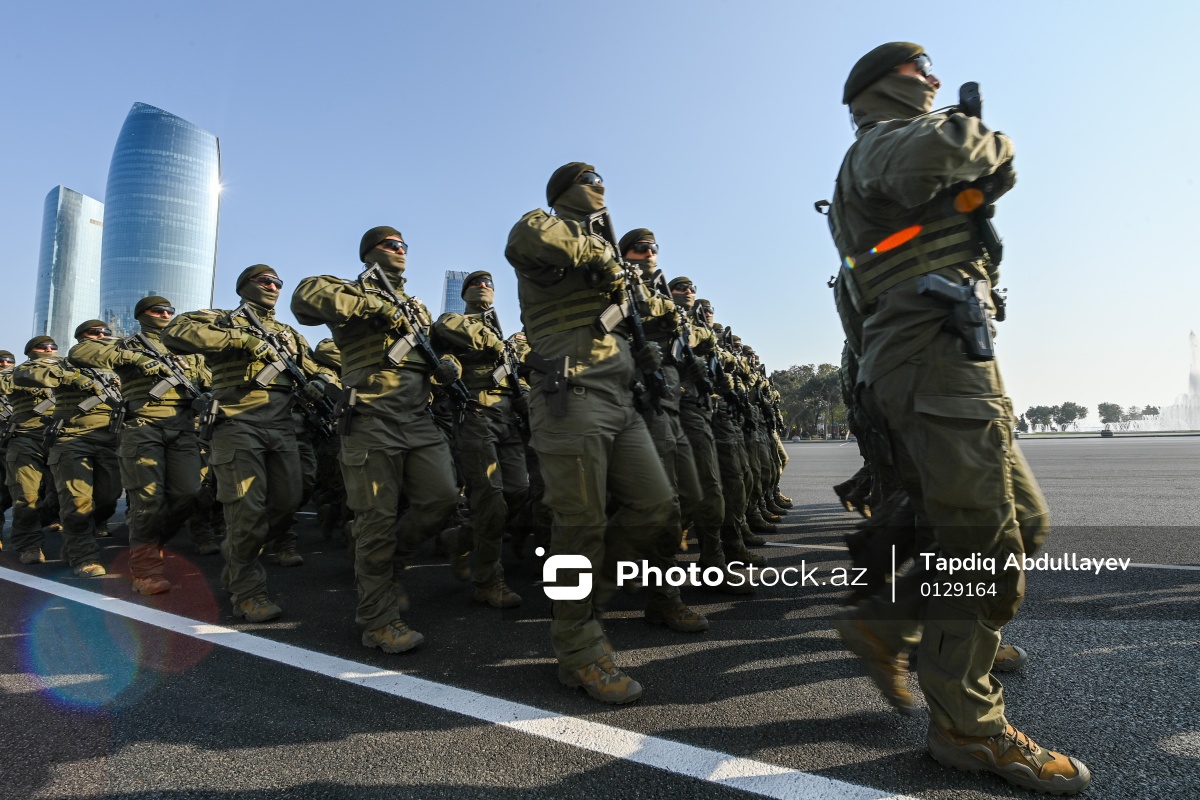 Azərbaycan Respublikasının Dövlət Təhlükəsizliyi Xidmətinin "Qartal" Xüsusi Təyinatlılarından ibarət parad heyəti.