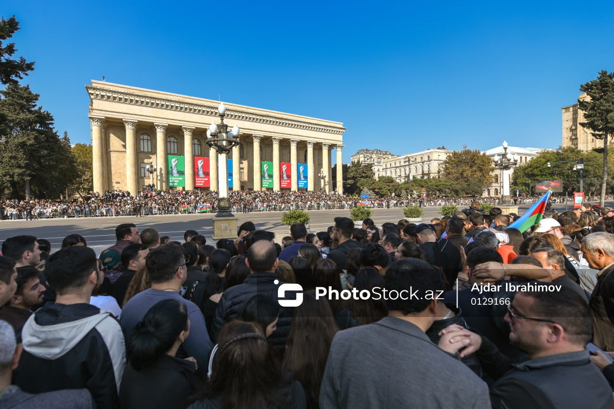 Noyabrın 8-də Bakının Azadlıq meydanında Vətən müharibəsində qələbənin beşinci ildönümünə həsr olunmuş hərbi parad keçirilib. Azərbaycan Respublikasının Prezidenti İlham Əliyev, birinci xanım Mehriban Əliyeva, Türkiyə Respublikasının Prezidenti Rəcəb Tayyib Ərdoğan, Pakistan İslam Respublikasının Baş naziri Məhəmməd Şahbaz Şərif paradda iştirak ediblər. Azərbaycanın, Türkiyənin və Pakistanın Dövlət himnləri səsləndirilib. Ümummilli Lider Heydər Əliyevin və qəhrəman şəhidlərimizin xatirəsi 1 dəqiqəlik sükutla yad olunub. Müdafiə naziri general-polkovnik Zakir Həsənov Azərbaycan Prezidenti, Silahlı Qüvvələrin Müzəffər Ali Baş Komandanı İlham Əliyevə raport verib. Paradda Azərbaycan Respublikasının Prezidenti İlham Əliyev, Türkiyə Respublikasının Prezidenti Rəcəb Tayyib Ərdoğan və Pakistan İslam Respublikasının Baş naziri Məhəmməd Şahbaz Şərif çıxış edib. Daha sonra Silahlı Qüvvələrin şəxsi heyətinin və hərbi texnikanın təntənəli keçidi başlayıb. Hərbi Dəniz Qüvvələrinin və Dövlət Sərhəd Xidməti Sahil Mühafizəsinin döyüş gəmiləri və katerləri Xəzər dənizinin sahil sularında yüksək döyüş hazırlığı nümayiş etdirib. Bundan sonra Azadlıq meydanı üzərində Azərbaycan və Türkiyə pilotlarının iştirakı ilə Hərbi Hava Qüvvələrinə məxsus döyüş təyyarələrinin və helikopterlərin uçuşu olub.