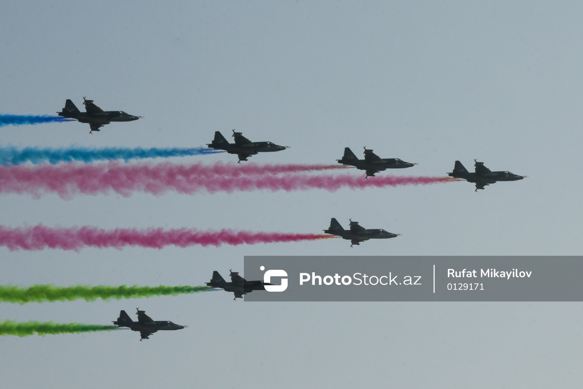 Bakıda keçirilən hərbi paradda nümayiş olunan “Su-25” təyyarəsi.
