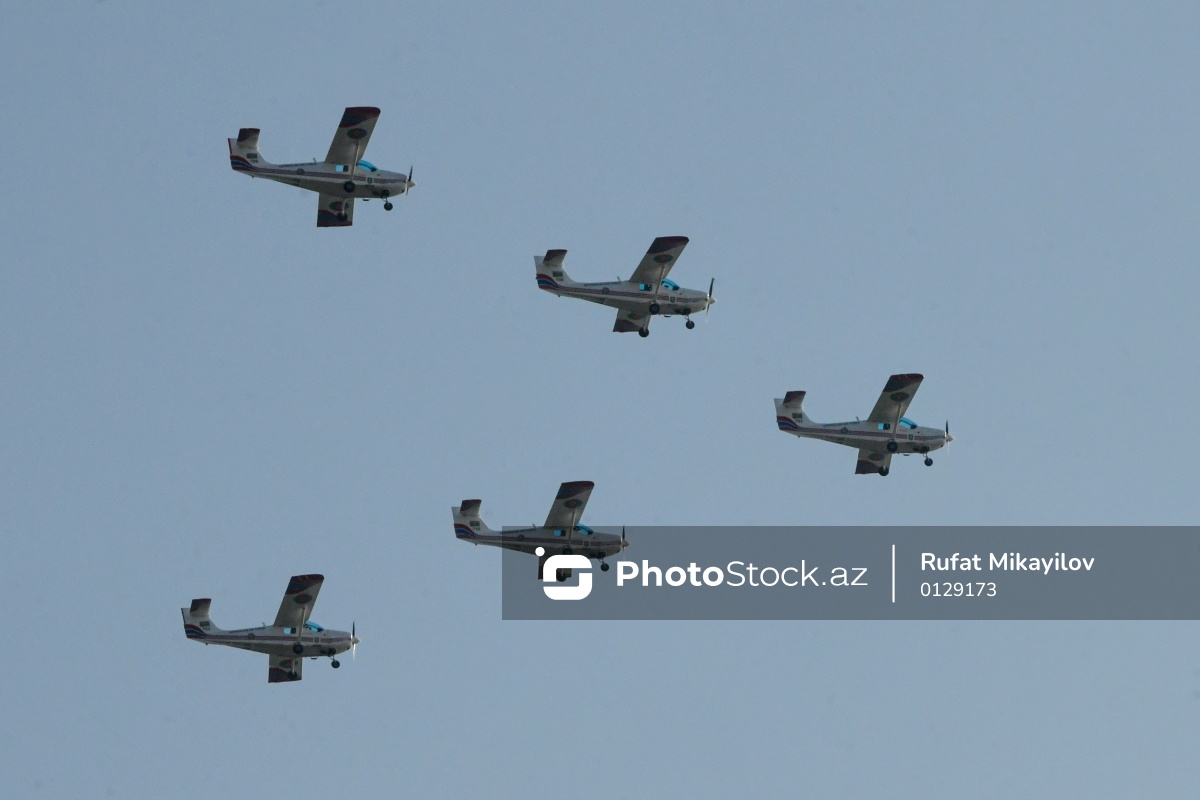 Bakıda keçirilən hərbi paradda nümayiş olunan "An-2" təyyarəsi.
