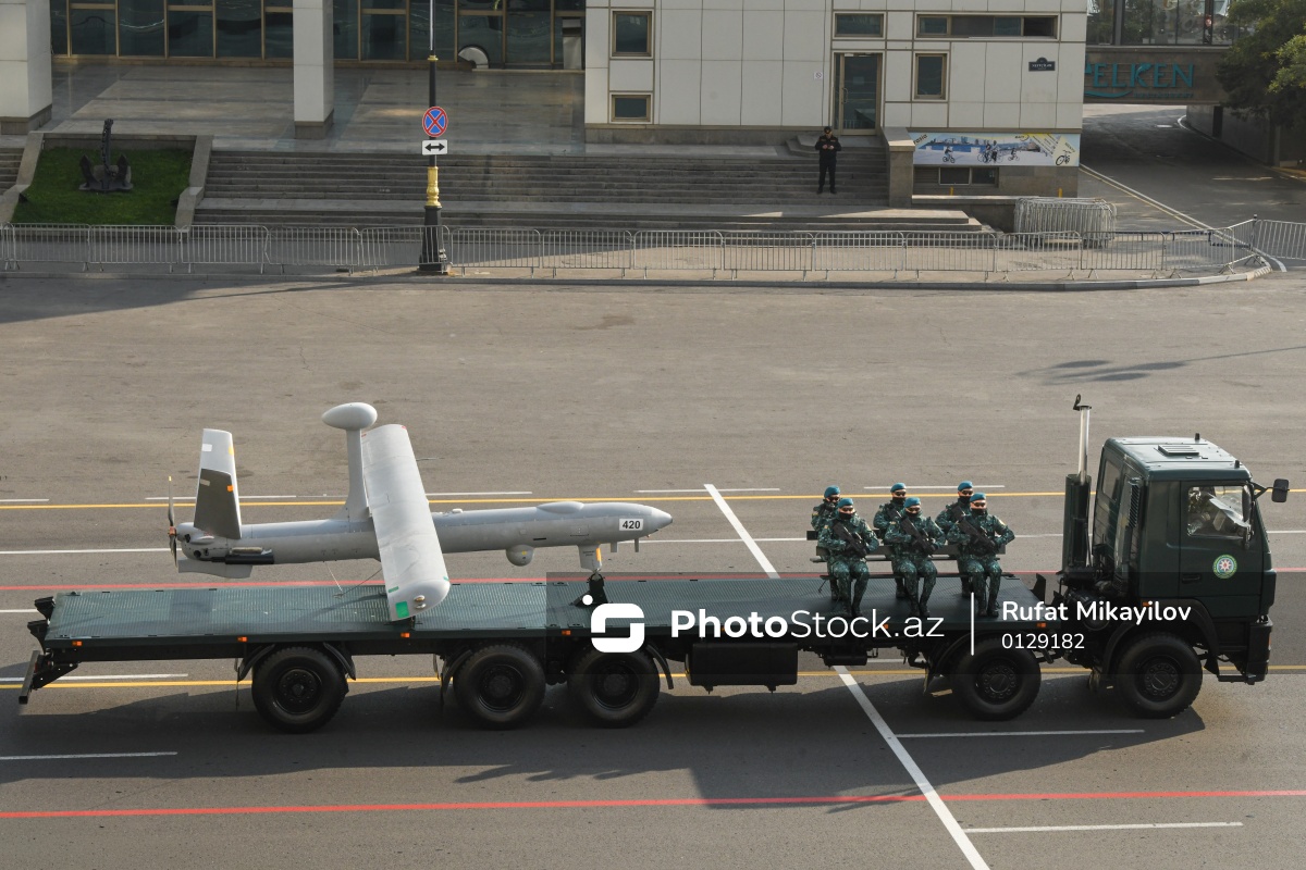 Bakıda keçirilən hərbi paradda nümayiş olunan “Hermes 450” pilotsuz uçuş aparatı.
