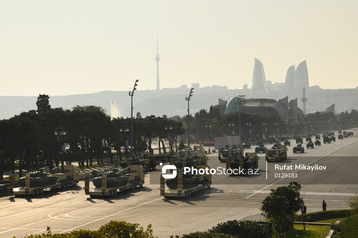 Noyabrın 8-də Bakının Azadlıq meydanında Vətən müharibəsində qələbənin beşinci ildönümünə həsr olunmuş hərbi parad keçirilib. Azərbaycan Respublikasının Prezidenti İlham Əliyev, birinci xanım Mehriban Əliyeva, Türkiyə Respublikasının Prezidenti Rəcəb Tayyib Ərdoğan, Pakistan İslam Respublikasının Baş naziri Məhəmməd Şahbaz Şərif paradda iştirak ediblər. Azərbaycanın, Türkiyənin və Pakistanın Dövlət himnləri səsləndirilib. Ümummilli Lider Heydər Əliyevin və qəhrəman şəhidlərimizin xatirəsi 1 dəqiqəlik sükutla yad olunub. Müdafiə naziri general-polkovnik Zakir Həsənov Azərbaycan Prezidenti, Silahlı Qüvvələrin Müzəffər Ali Baş Komandanı İlham Əliyevə raport verib. Paradda Azərbaycan Respublikasının Prezidenti İlham Əliyev, Türkiyə Respublikasının Prezidenti Rəcəb Tayyib Ərdoğan və Pakistan İslam Respublikasının Baş naziri Məhəmməd Şahbaz Şərif çıxış edib. Daha sonra Silahlı Qüvvələrin şəxsi heyətinin və hərbi texnikanın təntənəli keçidi başlayıb. Hərbi Dəniz Qüvvələrinin və Dövlət Sərhəd Xidməti Sahil Mühafizəsinin döyüş gəmiləri və katerləri Xəzər dənizinin sahil sularında yüksək döyüş hazırlığı nümayiş etdirib. Bundan sonra Azadlıq meydanı üzərində Azərbaycan və Türkiyə pilotlarının iştirakı ilə Hərbi Hava Qüvvələrinə məxsus döyüş təyyarələrinin və helikopterlərin uçuşu olub.