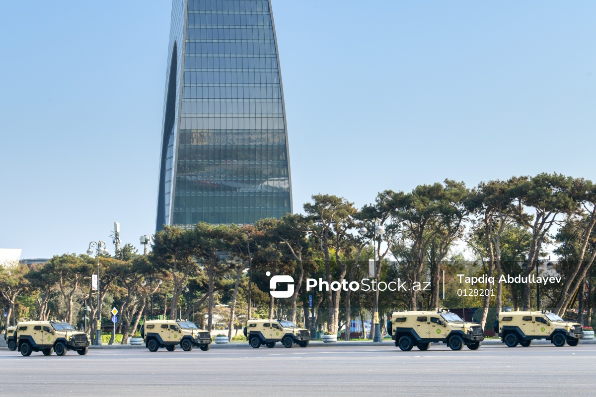 Noyabrın 8-də Bakının Azadlıq meydanında Vətən müharibəsində qələbənin beşinci ildönümünə həsr olunmuş hərbi parad keçirilib. Azərbaycan Respublikasının Prezidenti İlham Əliyev, birinci xanım Mehriban Əliyeva, Türkiyə Respublikasının Prezidenti Rəcəb Tayyib Ərdoğan, Pakistan İslam Respublikasının Baş naziri Məhəmməd Şahbaz Şərif paradda iştirak ediblər. Azərbaycanın, Türkiyənin və Pakistanın Dövlət himnləri səsləndirilib. Ümummilli Lider Heydər Əliyevin və qəhrəman şəhidlərimizin xatirəsi 1 dəqiqəlik sükutla yad olunub. Müdafiə naziri general-polkovnik Zakir Həsənov Azərbaycan Prezidenti, Silahlı Qüvvələrin Müzəffər Ali Baş Komandanı İlham Əliyevə raport verib. Paradda Azərbaycan Respublikasının Prezidenti İlham Əliyev, Türkiyə Respublikasının Prezidenti Rəcəb Tayyib Ərdoğan və Pakistan İslam Respublikasının Baş naziri Məhəmməd Şahbaz Şərif çıxış edib. Daha sonra Silahlı Qüvvələrin şəxsi heyətinin və hərbi texnikanın təntənəli keçidi başlayıb. Hərbi Dəniz Qüvvələrinin və Dövlət Sərhəd Xidməti Sahil Mühafizəsinin döyüş gəmiləri və katerləri Xəzər dənizinin sahil sularında yüksək döyüş hazırlığı nümayiş etdirib. Bundan sonra Azadlıq meydanı üzərində Azərbaycan və Türkiyə pilotlarının iştirakı ilə Hərbi Hava Qüvvələrinə məxsus döyüş təyyarələrinin və helikopterlərin uçuşu olub.