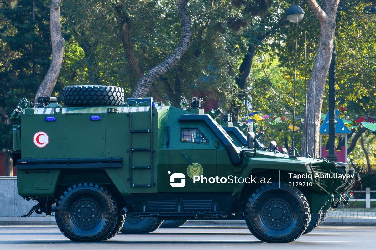 Bakıda keçirilən hərbi paradda nümayiş olunan “Ejder Yalçın” zirehli tibbi təxliyə avtomobili.