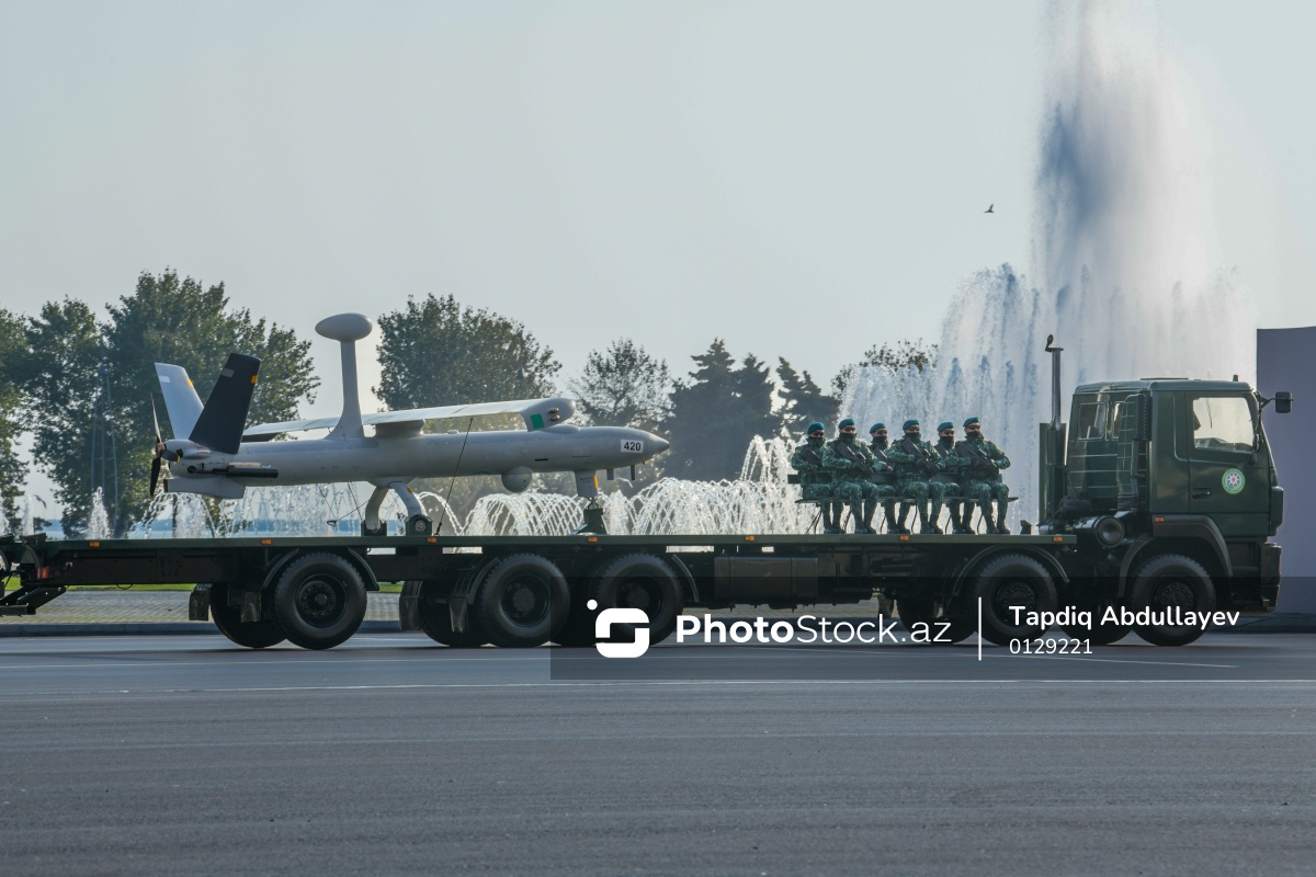 Bakıda keçirilən hərbi paradda nümayiş olunan “Hermes 450” pilotsuz uçuş aparatı.