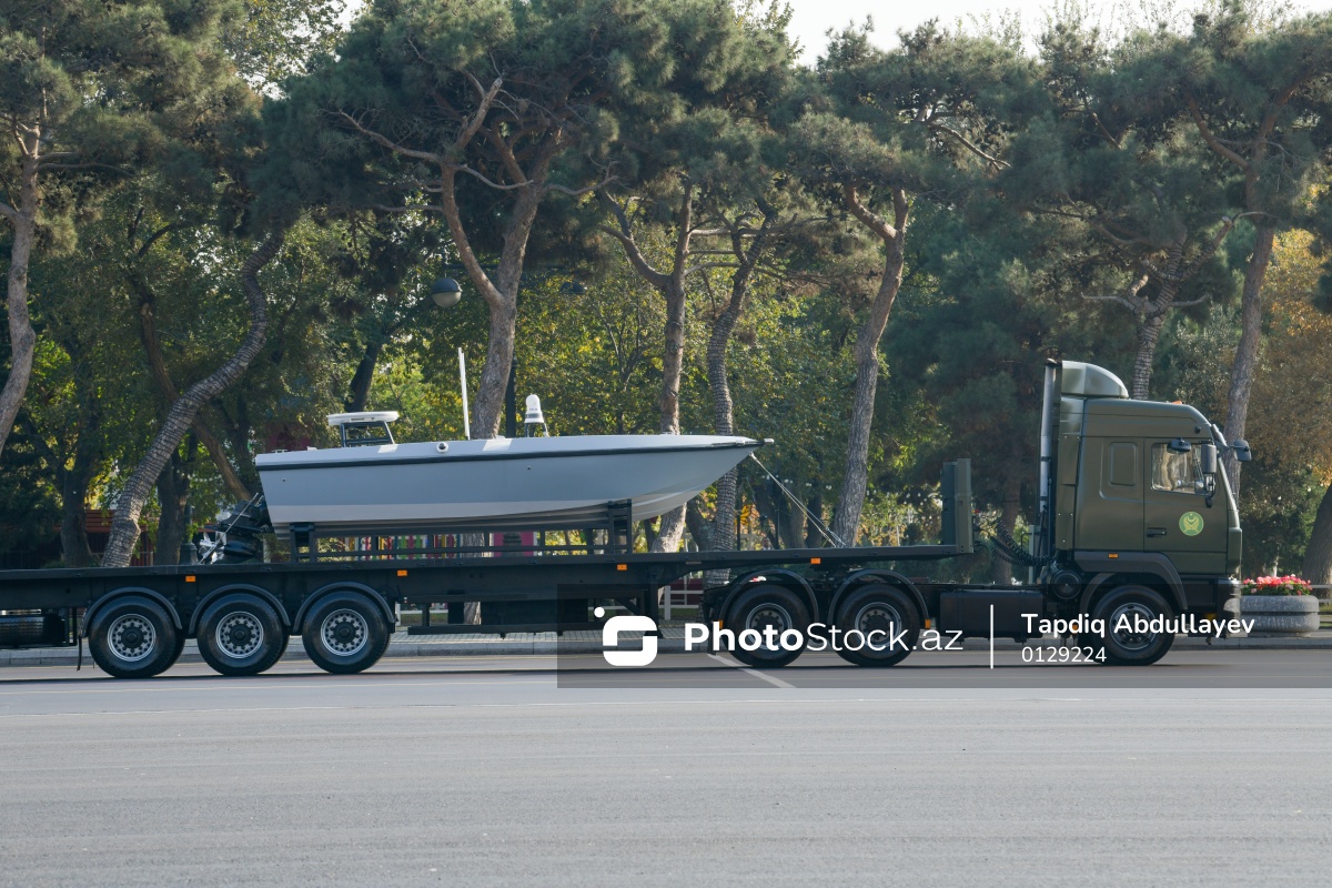 Bakıda keçirilən hərbi paradda nümayiş olunan "Kayra" kamikadze tipli suüstü dəniz vasitəsi.