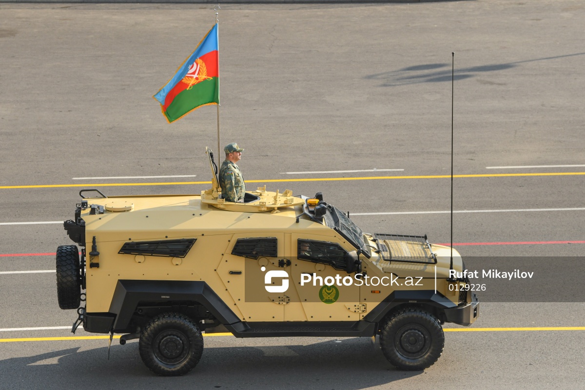 Bakıda keçirilən hərbi paradda nümayiş olunan “Sand Cat" zirehli maşını.
