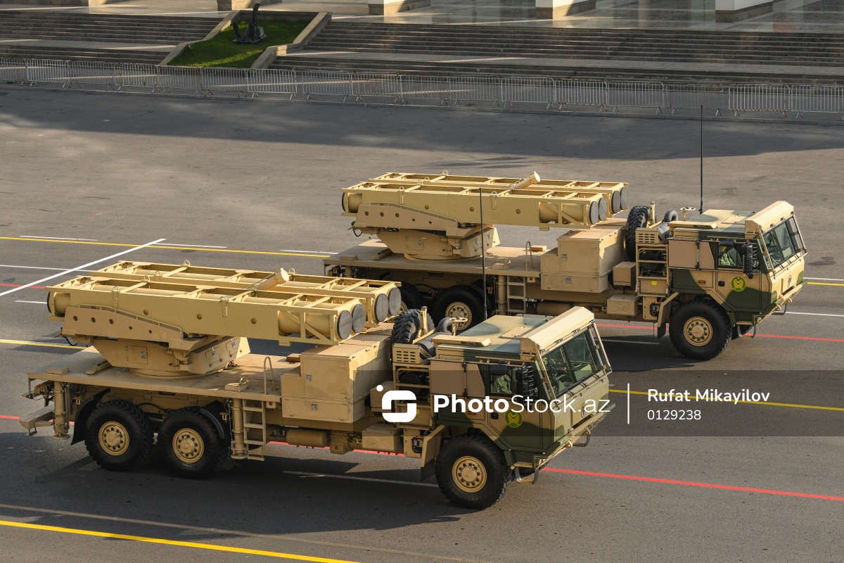 Bakıda keçirilən hərbi paradda nümayiş olunan "Predator Hawk" ballistik raket sistemi.