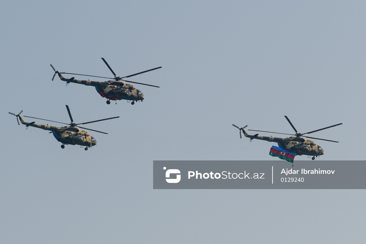 Bakıda keçirilən hərbi paradda nümayiş olunan "Mi-17" helikopteri.