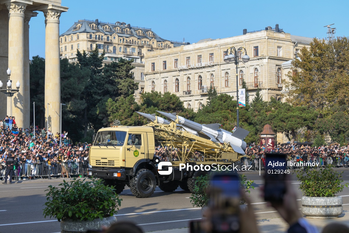 Bakıda keçirilən hərbi paradda nümayiş olunan S-125 "Neva-M" zenit raket kompleksi.