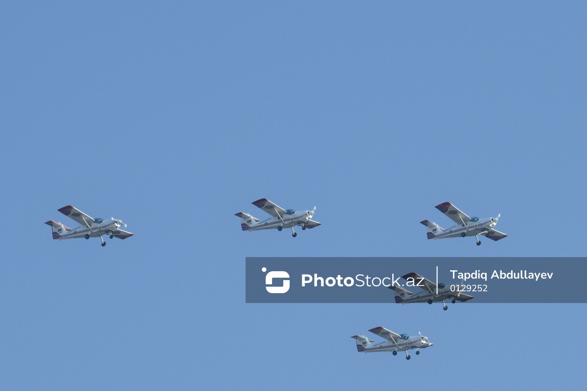 Bakıda keçirilən hərbi paradda nümayiş olunan "An-2" təyyarəsi.