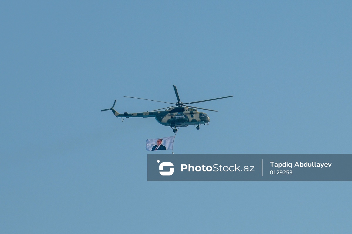 Bakıda keçirilən hərbi paradda nümayiş olunan "Mi-17" helikopteri.