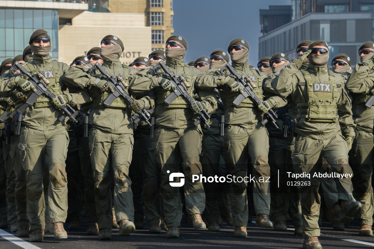 Azərbaycan Respublikasının Dövlət Təhlükəsizliyi Xidmətinin "Qartal" Xüsusi Təyinatlılarından ibarət parad heyəti.