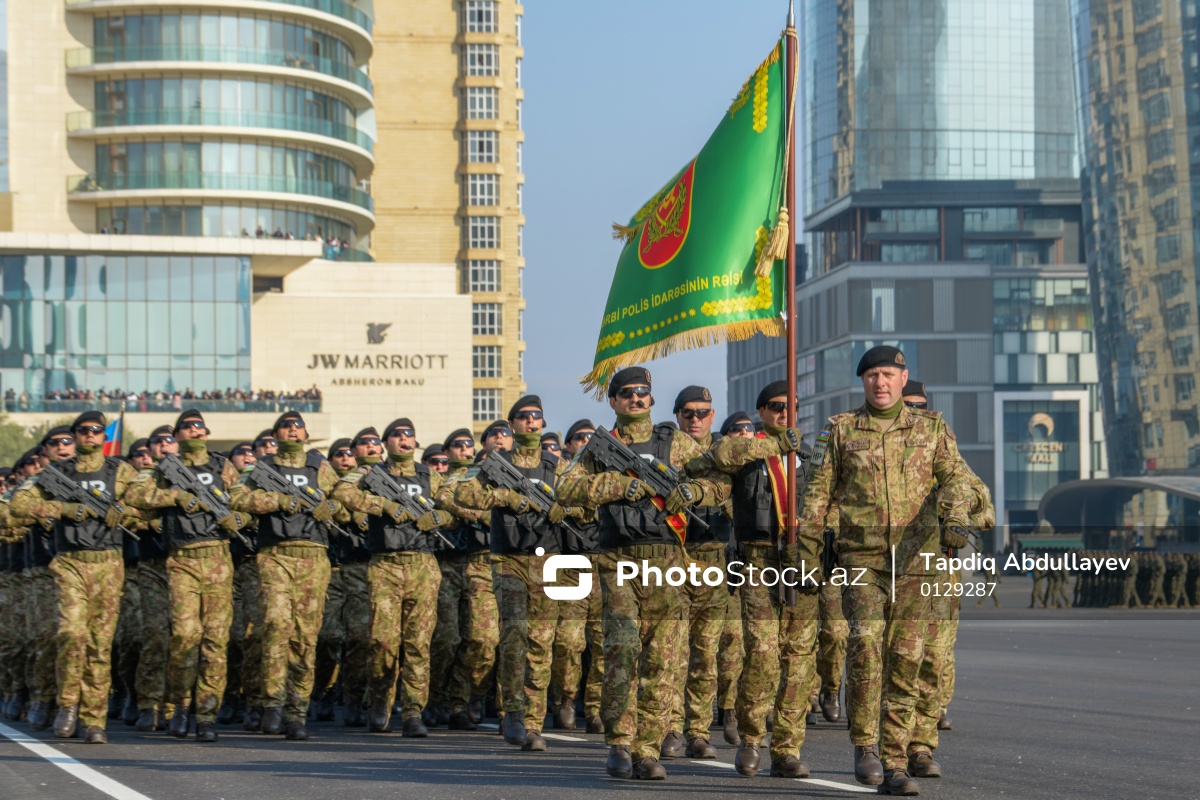 Azərbaycan Respublikasının Müdafiə Nazirliyinin Hərbi Polis İdarəsinin hərbi qulluqçularından parad heyəti.