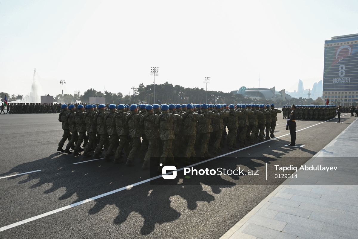 Noyabrın 8-də Bakının Azadlıq meydanında Vətən müharibəsində qələbənin beşinci ildönümünə həsr olunmuş hərbi parad keçirilib. Azərbaycan Respublikasının Prezidenti İlham Əliyev, birinci xanım Mehriban Əliyeva, Türkiyə Respublikasının Prezidenti Rəcəb Tayyib Ərdoğan, Pakistan İslam Respublikasının Baş naziri Məhəmməd Şahbaz Şərif paradda iştirak ediblər. Azərbaycanın, Türkiyənin və Pakistanın Dövlət himnləri səsləndirilib. Ümummilli Lider Heydər Əliyevin və qəhrəman şəhidlərimizin xatirəsi 1 dəqiqəlik sükutla yad olunub. Müdafiə naziri general-polkovnik Zakir Həsənov Azərbaycan Prezidenti, Silahlı Qüvvələrin Müzəffər Ali Baş Komandanı İlham Əliyevə raport verib. Paradda Azərbaycan Respublikasının Prezidenti İlham Əliyev, Türkiyə Respublikasının Prezidenti Rəcəb Tayyib Ərdoğan və Pakistan İslam Respublikasının Baş naziri Məhəmməd Şahbaz Şərif çıxış edib. Daha sonra Silahlı Qüvvələrin şəxsi heyətinin və hərbi texnikanın təntənəli keçidi başlayıb. Hərbi Dəniz Qüvvələrinin və Dövlət Sərhəd Xidməti Sahil Mühafizəsinin döyüş gəmiləri və katerləri Xəzər dənizinin sahil sularında yüksək döyüş hazırlığı nümayiş etdirib. Bundan sonra Azadlıq meydanı üzərində Azərbaycan və Türkiyə pilotlarının iştirakı ilə Hərbi Hava Qüvvələrinə məxsus döyüş təyyarələrinin və helikopterlərin uçuşu olub.