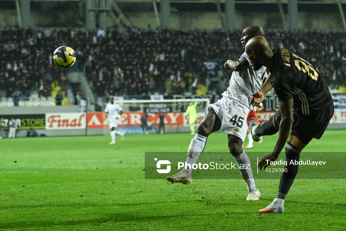 09.11.2025 “Azersun Arena”, Misli Premyer Liqasının "Qarabağ" - “Neftçi” oyununda "Neftçi" futbol klubunun oyunçusu Vensan Abubakar (solda) və "Qarabağ" futbol klubunun oyunçusu Kevin Medina (sağda) mübarizəsi.