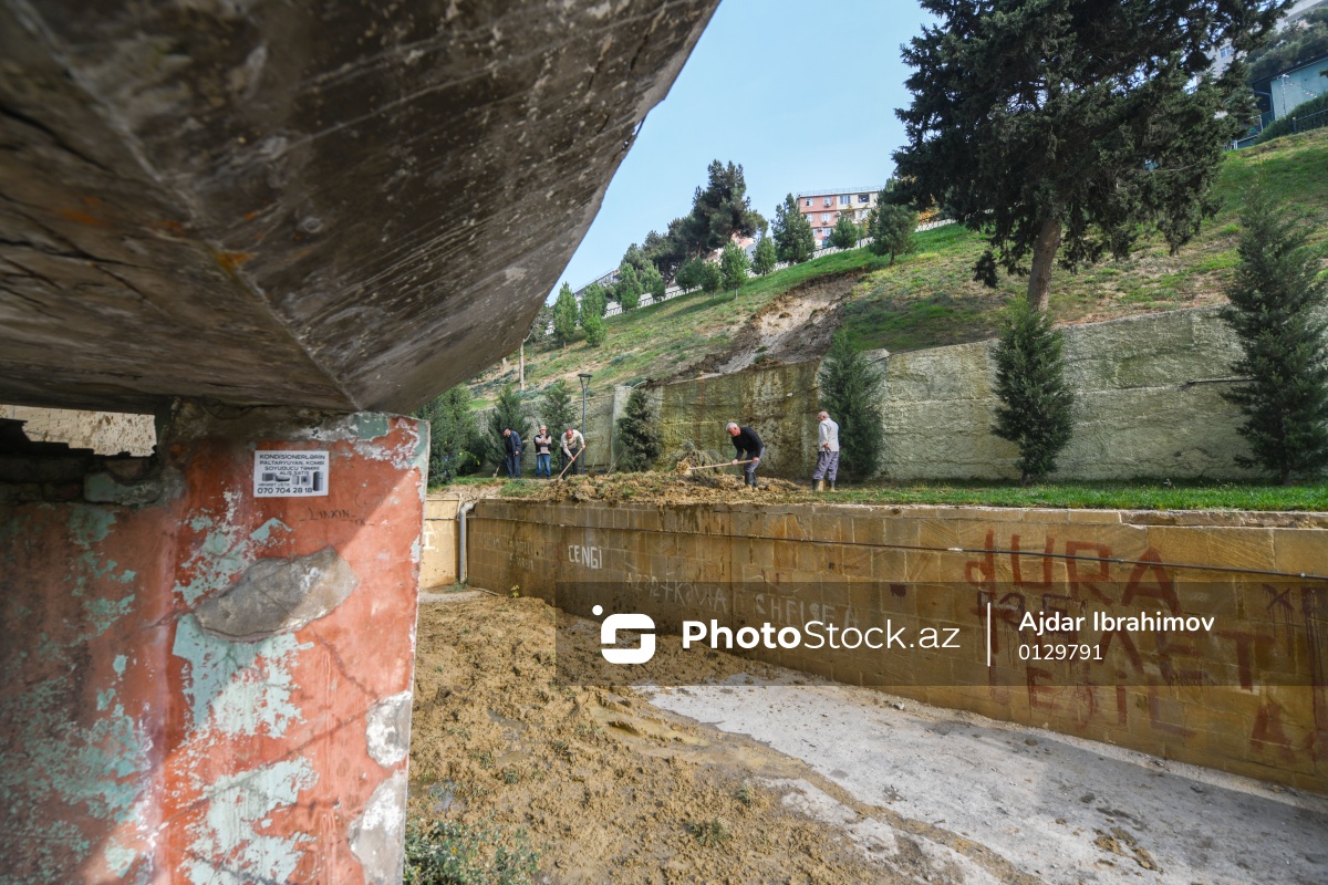 Əhmədli qəsəbəsində baş verən torpaq sürüşməsi