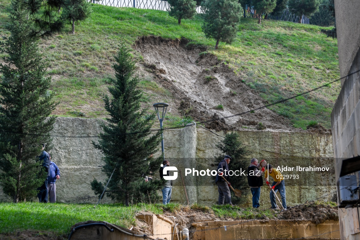 Əhmədli qəsəbəsində baş verən torpaq sürüşməsi