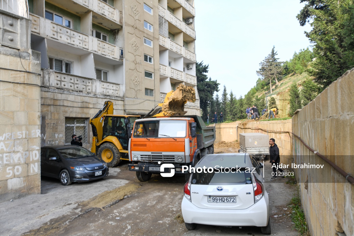 Əhmədli qəsəbəsində baş verən torpaq sürüşməsi