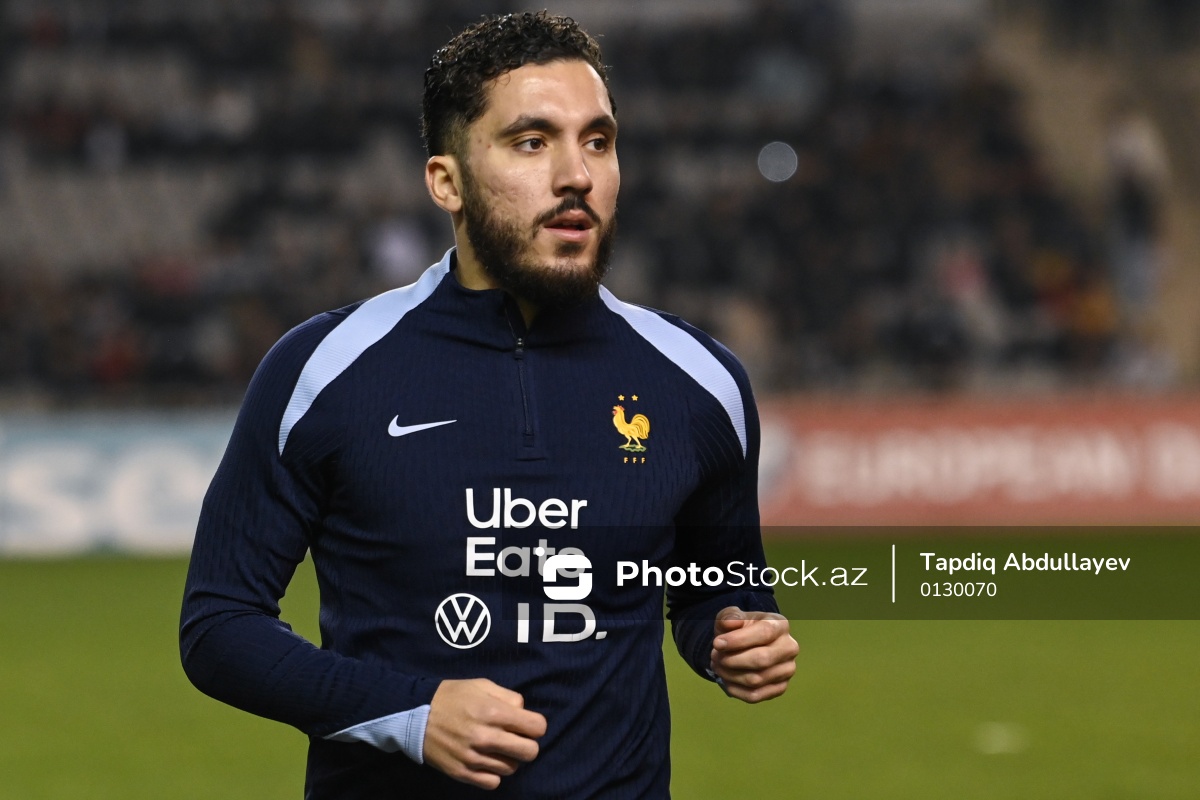 16.11.2025 Tofiq Bəhramov adına Respublika stadionu, DÇ-2026-nın seçmə mərhələsində Azərbaycan – Fransa oyunundan öncəki məşq prosesində Fransa millisinin ehtiyat oyunçusu Rayan Şerki.