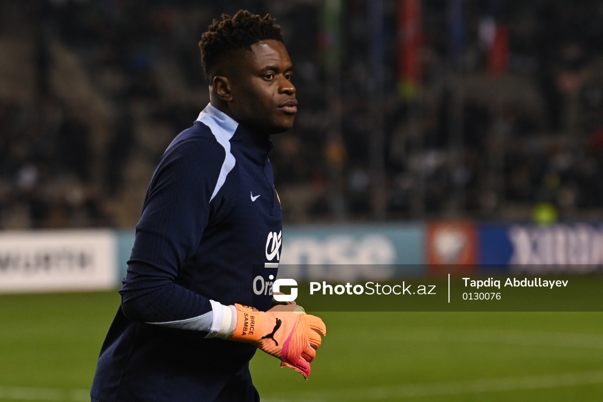 16.11.2025 Tofiq Bəhramov adına Respublika stadionu, DÇ-2026-nın seçmə mərhələsində Azərbaycan – Fransa oyunundan öncəki məşq prosesində Fransa millisinin ehtiyat qapıçısı Bris Samba.