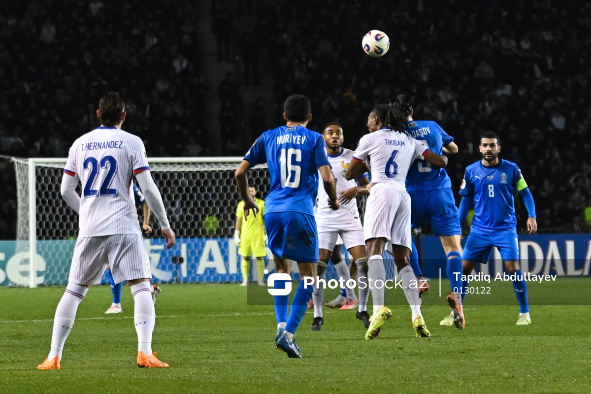 DÇ-2026-nın seçmə mərhələsi çərçivəsində Tofiq Bəhramov adına Respublika stadionunda Azərbaycan milli futbol komandası Fransa yığması ilə qarşılaşıb. Matçın 4-cü dəqiqəsində millimizin oyunçusu Renat Dadaşov hesabı açıb. 17-ci dəqiqədə Fransa yığması hesabı bərabərləşdirib. Oyunun 30-cu dəqiqəsində Manes Akliuş fərqlənərək qonaq komandanı hesabda önə çıxarıb. 45+1-ci dəqiqədə isə Kefren Türam üçüncü qolu vurub. Oyun Fransa millisinin 1:3 hesablı qələbəsi ilə başa çatıb.
