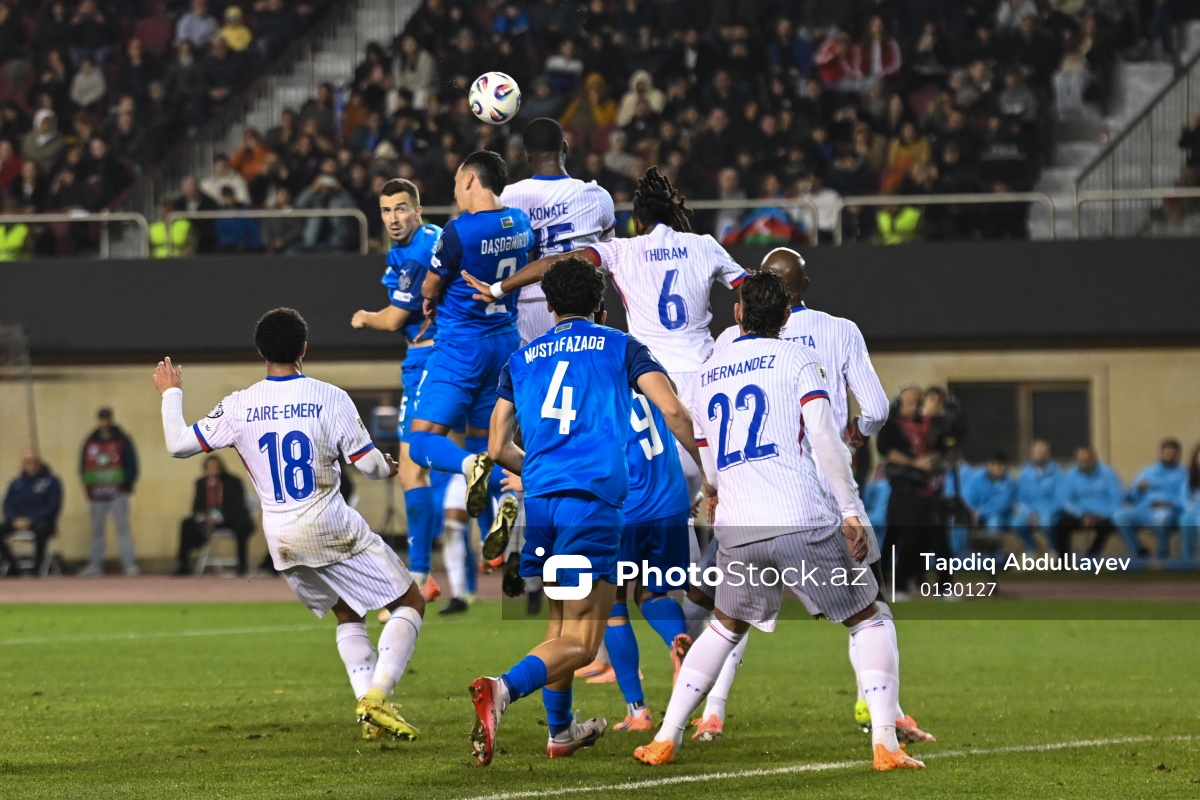 DÇ-2026-nın seçmə mərhələsi çərçivəsində Tofiq Bəhramov adına Respublika stadionunda Azərbaycan milli futbol komandası Fransa yığması ilə qarşılaşıb. Matçın 4-cü dəqiqəsində millimizin oyunçusu Renat Dadaşov hesabı açıb. 17-ci dəqiqədə Fransa yığması hesabı bərabərləşdirib. Oyunun 30-cu dəqiqəsində Manes Akliuş fərqlənərək qonaq komandanı hesabda önə çıxarıb. 45+1-ci dəqiqədə isə Kefren Türam üçüncü qolu vurub. Oyun Fransa millisinin 1:3 hesablı qələbəsi ilə başa çatıb.