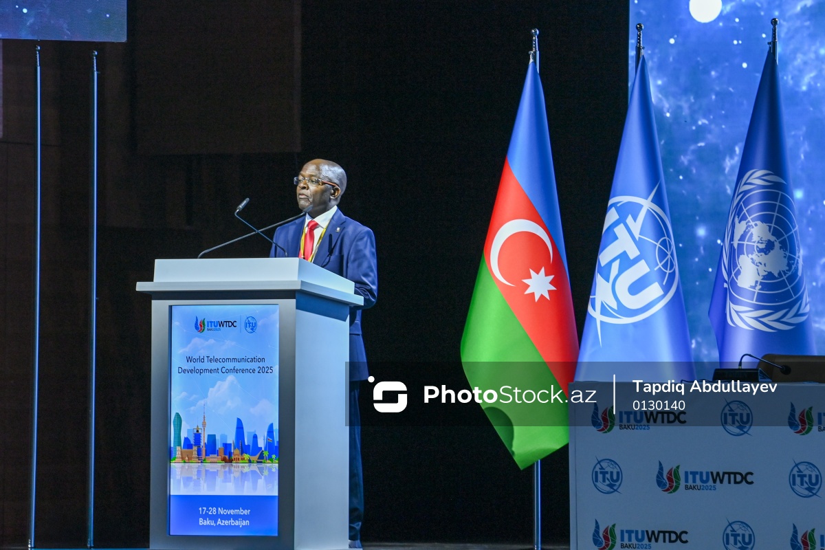 Ümumdünya Telekommunikasiyanın İnkişafı Konfransında (WTDC-2025) çıxış edən Beynəlxalq Telekommunikasiya İttifaqının (ITU) İnkişaf Bürosunun direktoru Kosmas Lakison Zavazava.