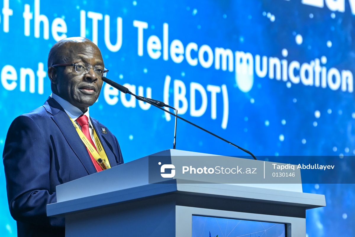 Ümumdünya Telekommunikasiyanın İnkişafı Konfransında (WTDC-2025) çıxış edən Beynəlxalq Telekommunikasiya İttifaqının (ITU) İnkişaf Bürosunun direktoru Kosmas Lakison Zavazava.
