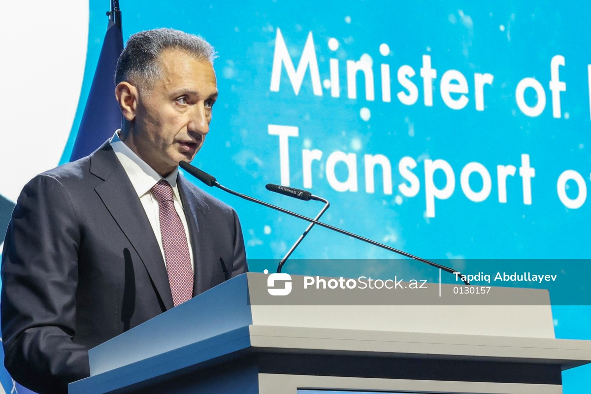 Ümumdünya Telekommunikasiyanın İnkişafı Konfransında (WTDC-2025) çıxış edən Azərbaycan Respublikasının rəqəmsal inkişaf və nəqliyyat naziri Rəşad Nəbiyev.