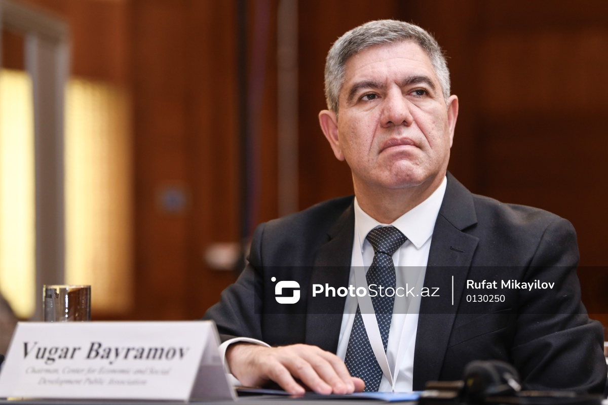 Azərbaycan-ABŞ Beyin Mərkəzlərinin Birinci Forumunda iştirak edən Azərbaycan Respublikasının Milli Məclisinin deputatı Vüqar Bayramov.