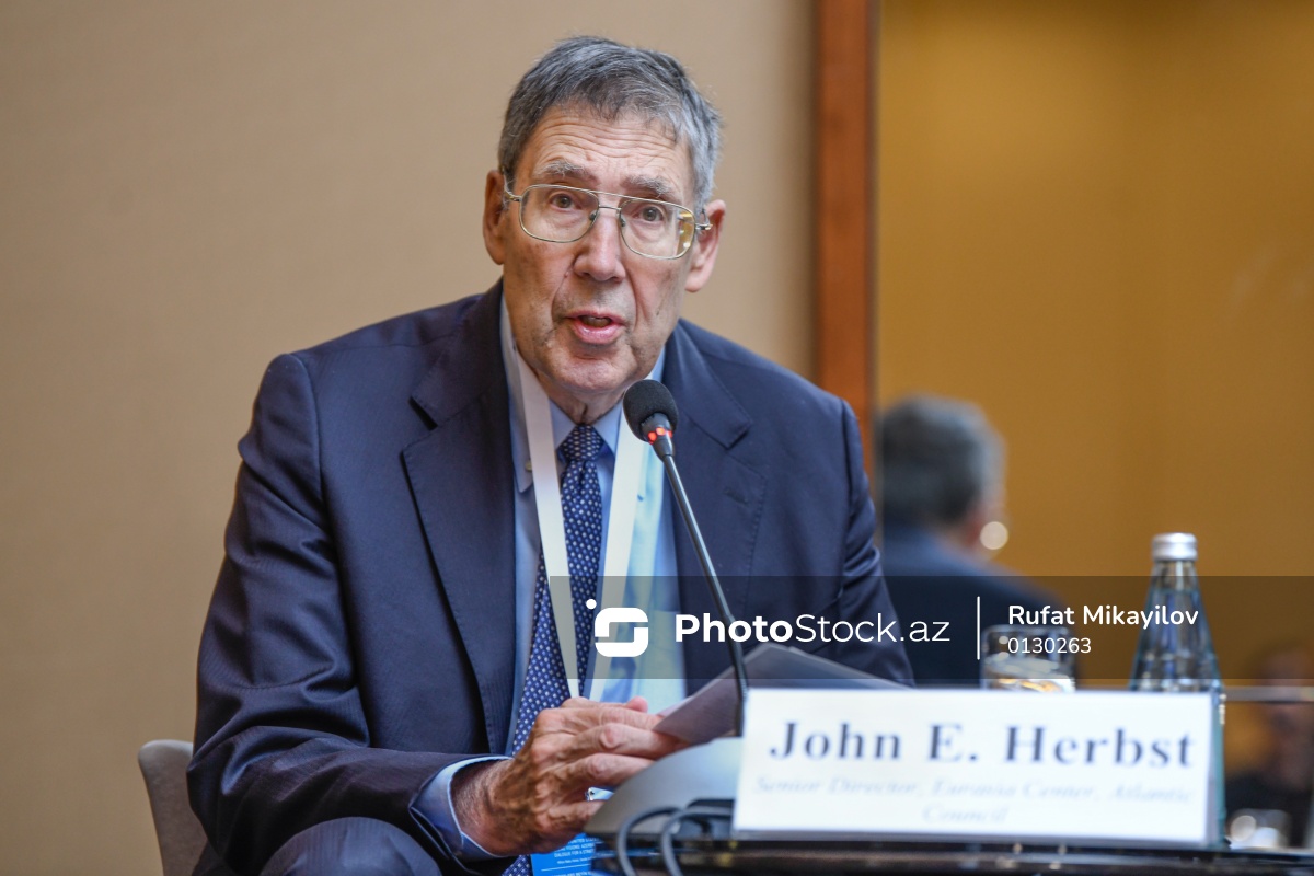 Azərbaycan-ABŞ Beyin Mərkəzlərinin Birinci Forumunda çıxış edən Atlantik Şurasının Avrasiya Mərkəzinin baş direktoru Con Herbst.