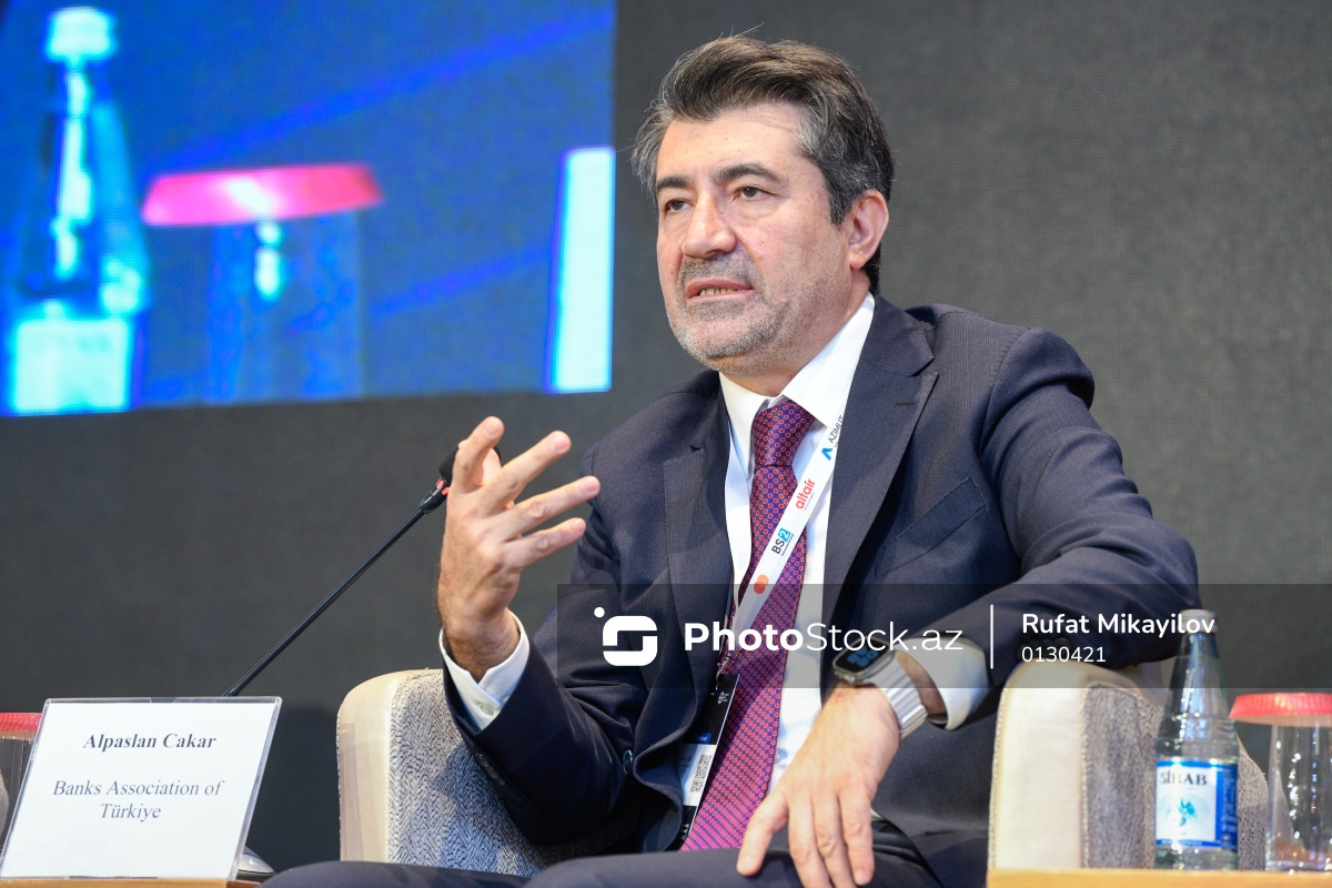 IX Beynəlxalq Bankçılıq Forumunda iştirak edən Türkiyə Banklar Birliyinin İdarə Heyətinin sədri Alpaslan Çakar.