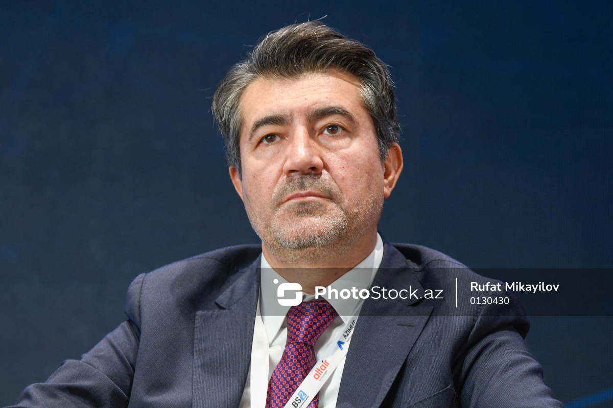 IX Beynəlxalq Bankçılıq Forumunda iştirak edən Türkiyə Banklar Birliyinin İdarə Heyətinin sədri Alpaslan Çakar.