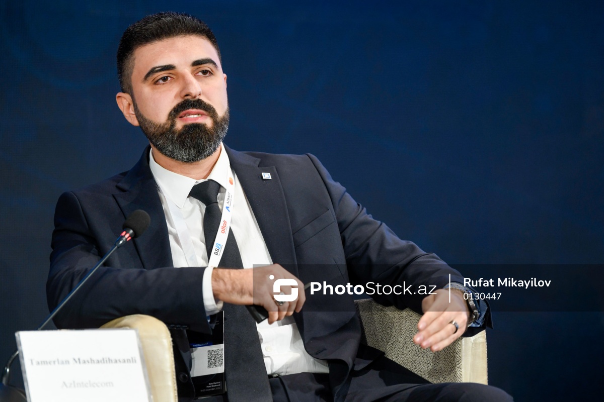 IX Beynəlxalq Bankçılıq Forumunda iştirak edən "AzInTelecom" MMC-nin Məhsul və Xidmətlər şöbəsinin müdiri Tamerlan Məşədihəsənli.