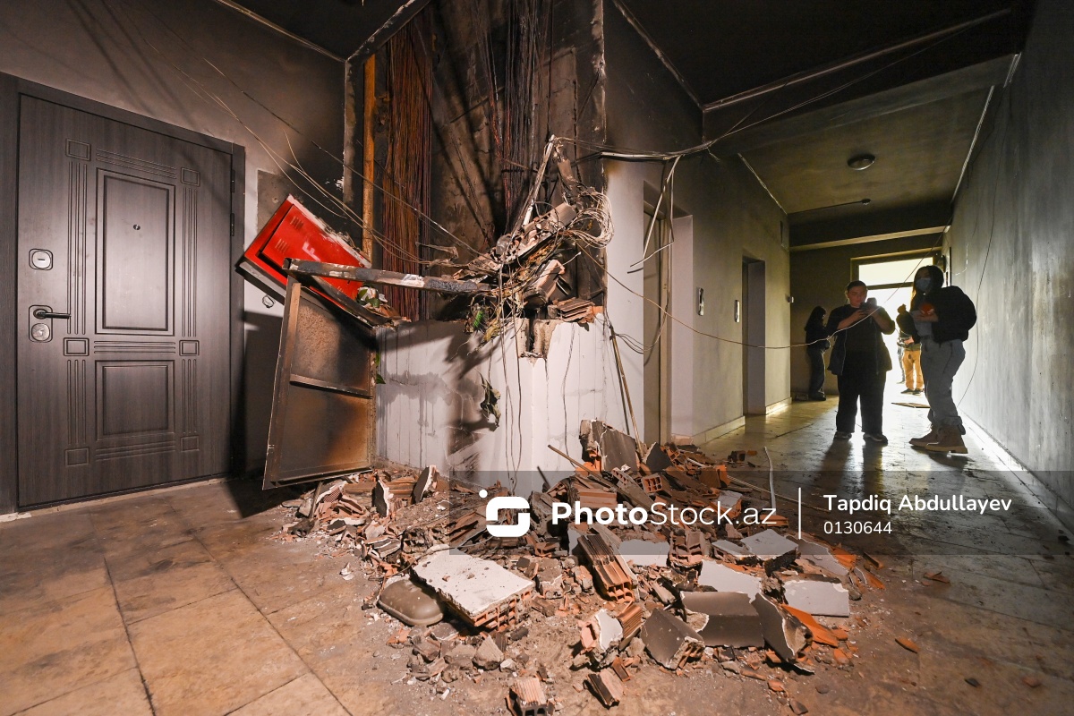 Yasamaldakı binada baş verən yanğından son görüntülər