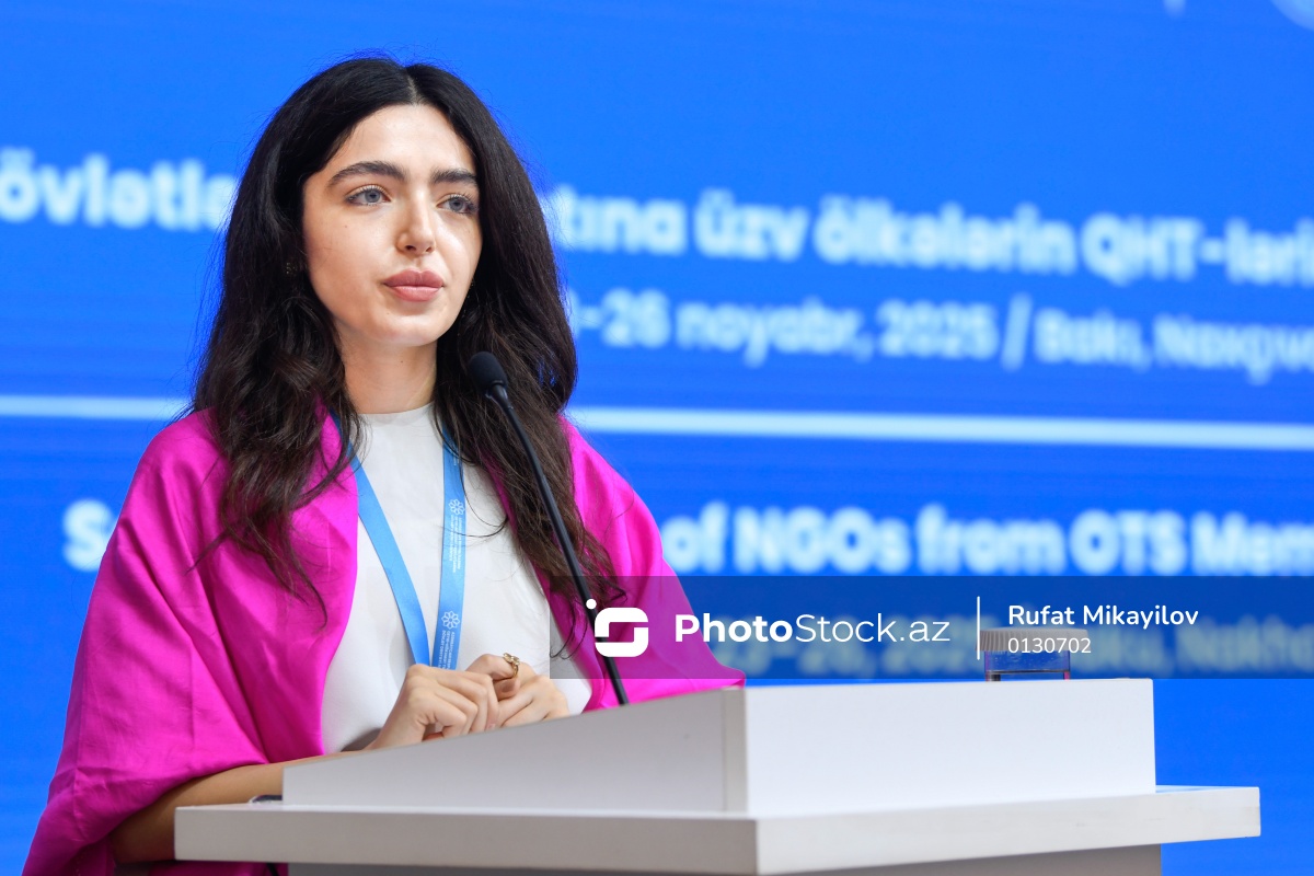 Türk Dövlətləri Təşkilatına (TDT) üzv ölkələrin QHT-lərinin Həmrəylik Forumunda iştirak edən Qeyri-Hökumət Təşkilatlarına Dövlət Dəstəyi Agentliyinin nümayəndəsi Aytac Məhəmmədova.