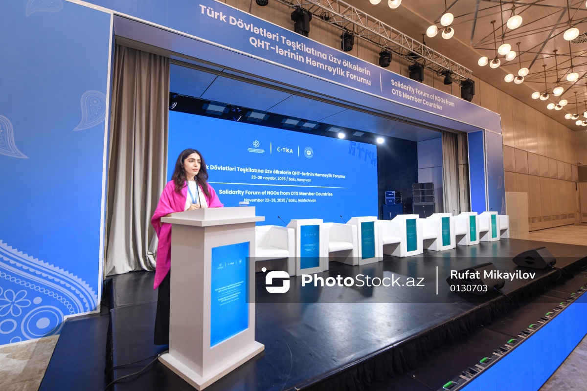 Türk Dövlətləri Təşkilatına (TDT) üzv ölkələrin QHT-lərinin Həmrəylik Forumunda iştirak edən Qeyri-Hökumət Təşkilatlarına Dövlət Dəstəyi Agentliyinin nümayəndəsi Aytac Məhəmmədova.