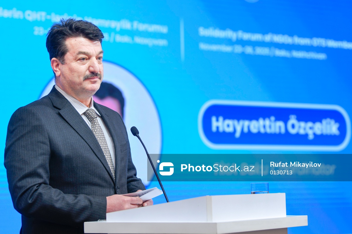Türk Dövlətləri Təşkilatına (TDT) üzv ölkələrin QHT-lərinin Həmrəylik Forumunda iştirak edən Türk Əməkdaşlıq və Koordinasiya Agentliyinin (TİKA) Bakı ofisinin rəhbəri Hayrettin Özçelik.