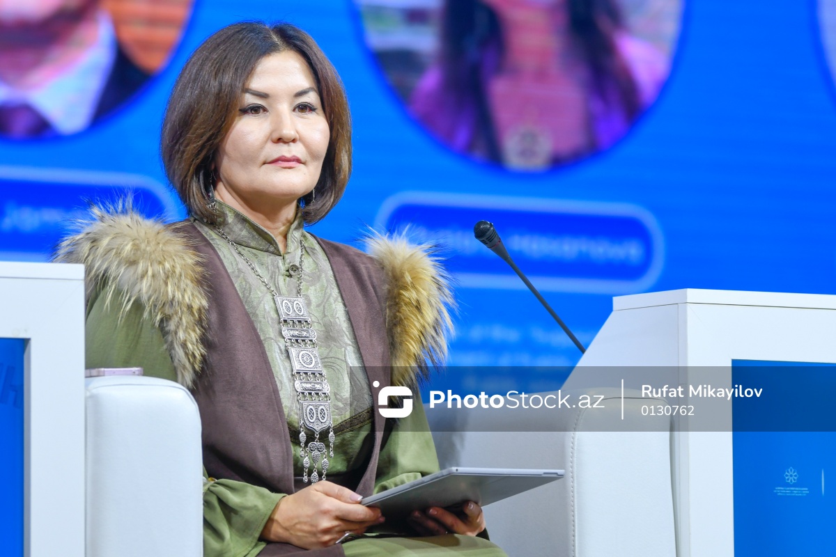 Türk Dövlətləri Təşkilatına (TDT) üzv ölkələrin QHT-lərinin Həmrəylik Forumunda iştirak edən Qazaxıstanın "Community Hub" İctimai Fondunun direktoru Assiya Tikeyeva.