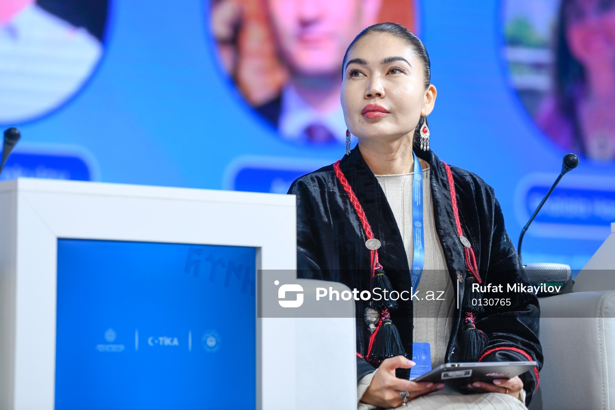 Türk Dövlətləri Təşkilatına (TDT) üzv ölkələrin QHT-lərinin Həmrəylik Forumunda iştirak edən Qazaxıstanın “Səninlə Gələcək” Respublika İctimai Birliyinin sədri Jansaya İsmagulova.