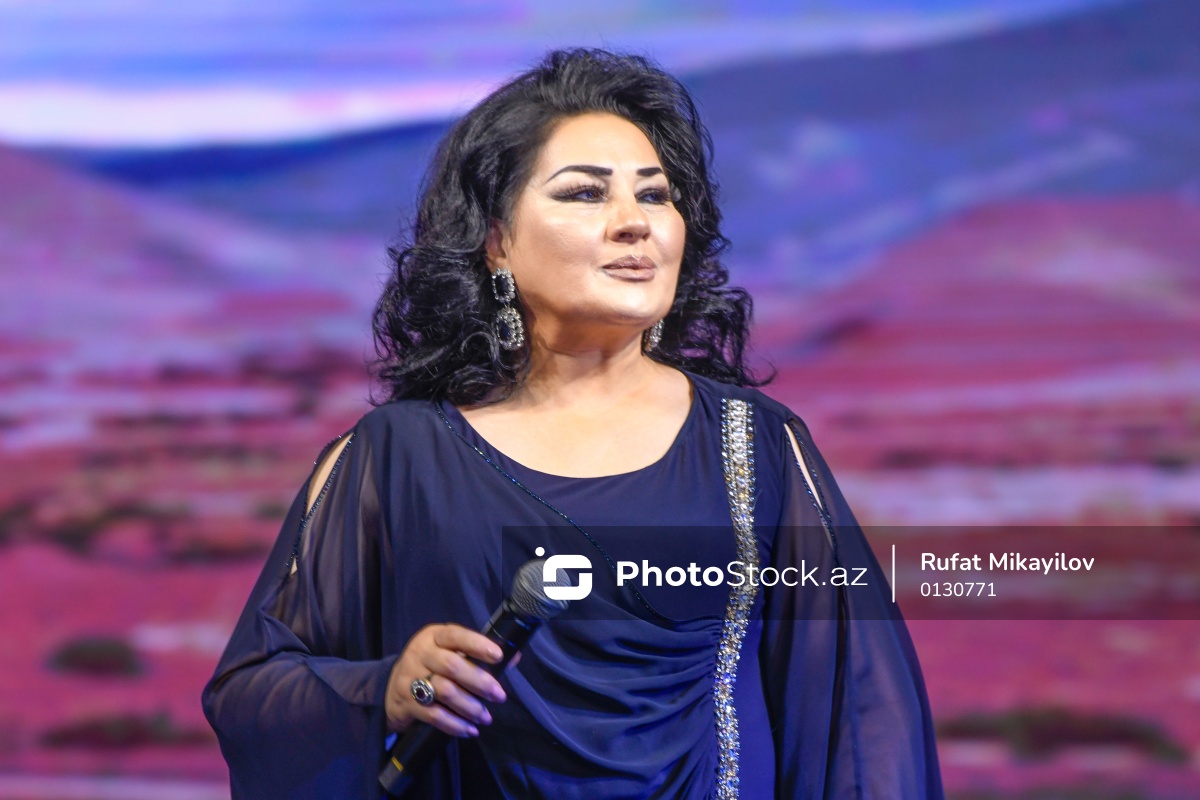 Türk Dövlətləri Təşkilatına (TDT) üzv ölkələrin QHT-lərinin Həmrəylik Forumunda çıxış edən Azərbaycan Respublikasının Əməkdar artisti, müğənni Aybəniz Haşımova.
