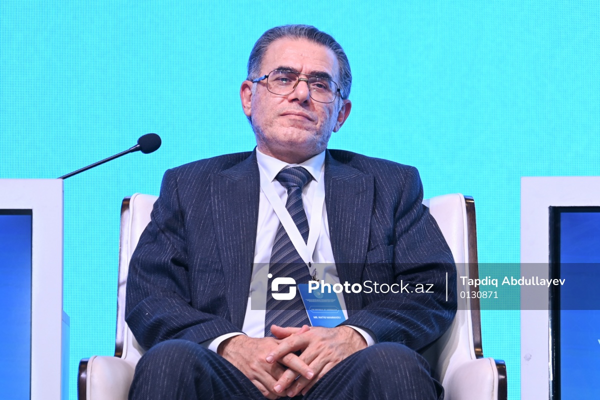 Türk Dövlətləri Təşkilatının Media Forumu çərçivəsində “Müasir dövrdə artan qlobal informasiya təhdidlərinə qarşı dayanıqlı və preventiv addımlar: Türk dövlətlərinin media ekosistemi nümunəsində” mövzusuna həsr olunmuş panel sessiyasında iştirak edən Medianın İnkişafı Agentliyinin İcraçı direktorunun müavini Natiq Məmmədli.