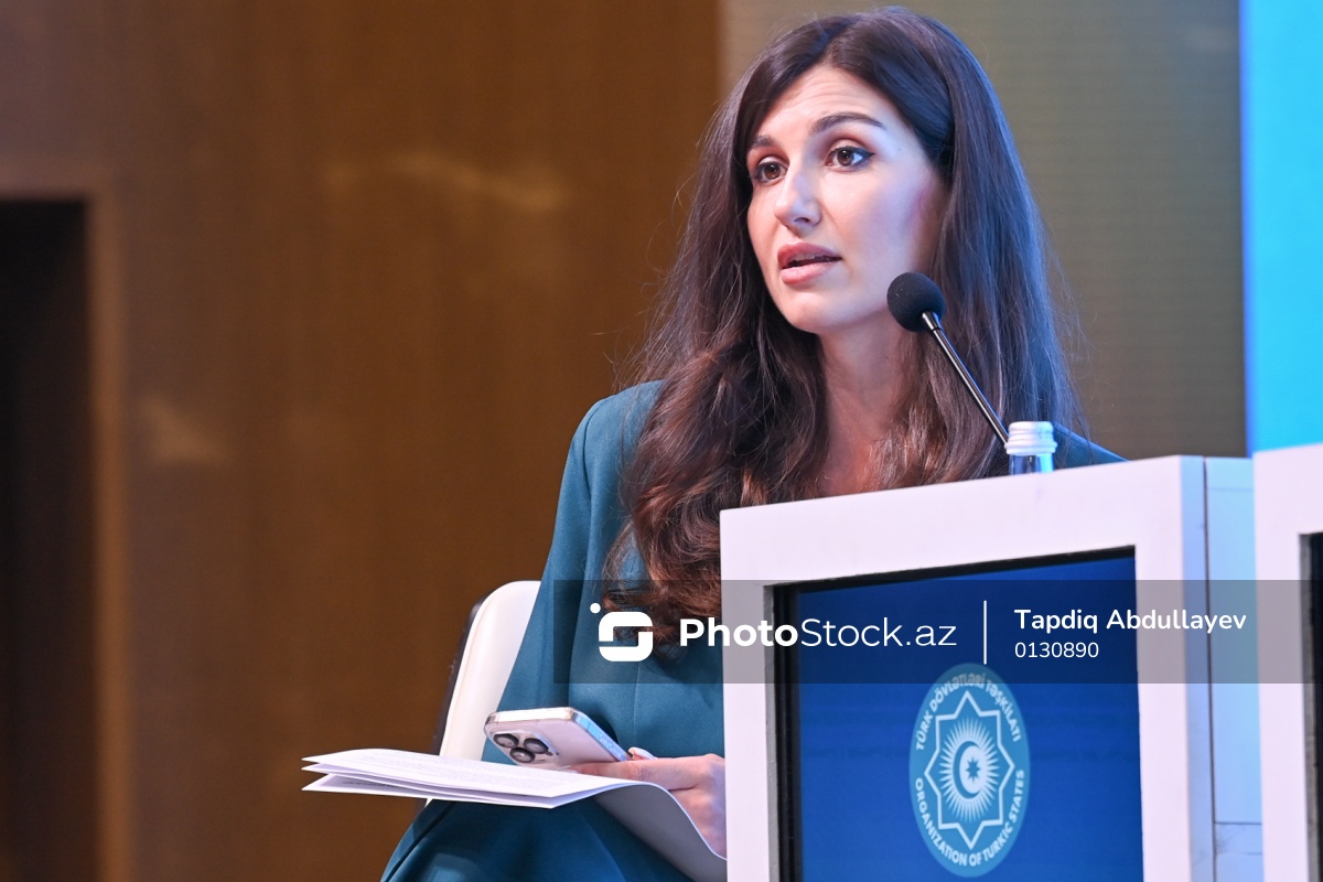 Türk Dövlətləri Təşkilatının Media Forumu çərçivəsində "Rəqəmsal media mühitində TDT-yə üzv dövlətlərin qarşılıqlı əməkdaşlıq imkanları" mövzusuna həsr olunmuş panel sessiyasında iştirak edən CBC telekanalının xüsusi müxbiri Elmira Musazadə.