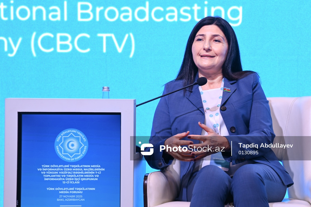 Türk Dövlətləri Təşkilatının Media Forumu çərçivəsində "Rəqəmsal media mühitində TDT-yə üzv dövlətlərin qarşılıqlı əməkdaşlıq imkanları" mövzusuna həsr olunmuş panel sessiyasında iştirak edən Azərbaycan Respublikasının Milli Məclisinin deputatı Sevil Mikayılova.