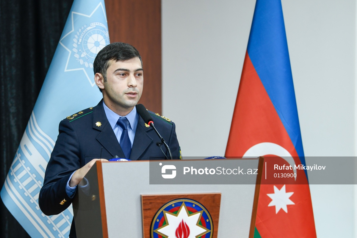 Hava Nəqliyyatında Baş Gömrük İdarəsinə təşkil olunan mediaturda çıxış edən Dövlət Gömrük Komitəsinin Hava Nəqliyyatında Baş Gömrük İdarəsinin Xidmətin təşkili şöbəsinin rəisi Elşən Səfərli.